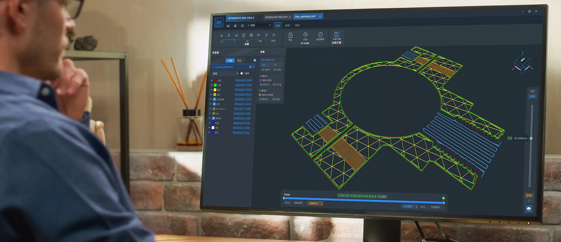 Grâce à ses deux extrudeurs indépendants (IDEX) et son plateau de 260 (305) * 260 * 260 mm, la 310 Apollo atteint 200 mm/s en PAEK et 600 mm/s sur les matériaux d'ingénierie.