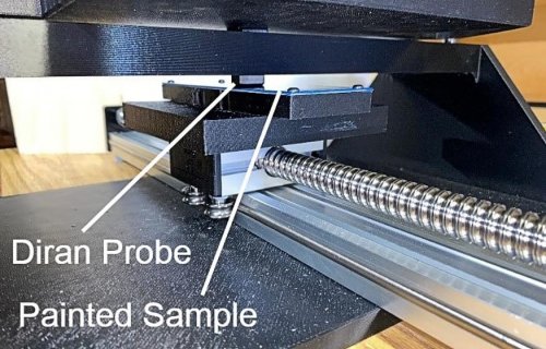 Le résultat est illustré sur la figure 2. Aucune rayure discernable n'est apparue dans la finition peinte suite à l'interaction avec la sonde de test Diran. La même expérience a été réalisée avec une sonde imprimée en 3D en polycarbonate (PC). Contrairement au matériau Diran, le PC a produit environ 25 à 30 rayures visibles, comme le montre la figure 3.